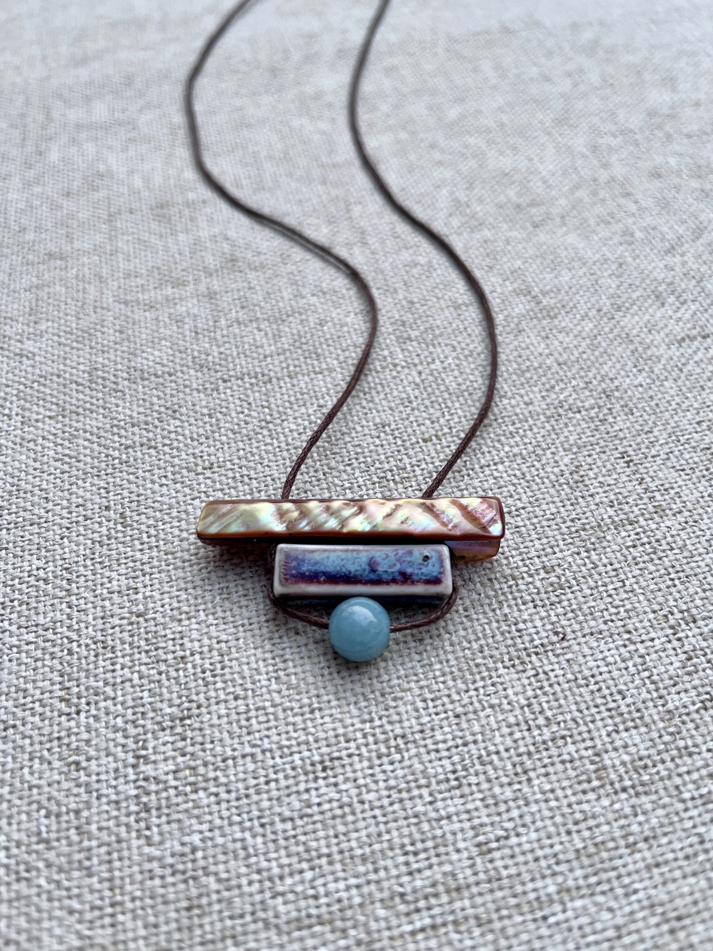 Je crée à partir de matières ramenées de voyage, en petites quantités, des bijoux empreints de liberté et porteurs de souffle: colliers, sautoirs, bracelets et boucles d'oreilles parfaitement non-genrés. Une pièce à la fois, avec lenteur et entrain, m'inspirant de cultures millénaires et de vastes paysages. Des bijoux urbains, mais toujours inspirés par la nature.